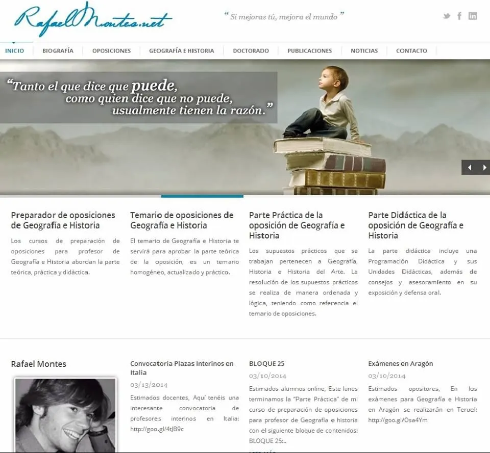 Estimados amigos, opositores, alumnos y compañeros, Ya tenéis disponible en el enlace de siempre: www.rafaelmontes.net Mi nueva página web. Ha mejorado muchísimo gracias al trabajo de mi hermana María del Mar Montes Gutiérrez, que me [...]